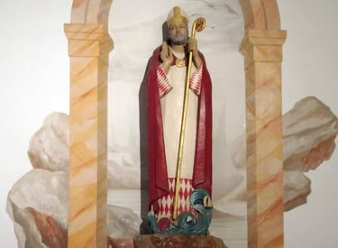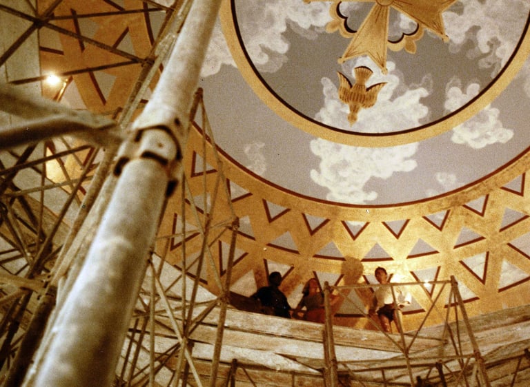 Fresques, trompes l’œil, mobilier liturgique, maîtrise d’œuvre de l'ensemble de l'architecture intérieure.