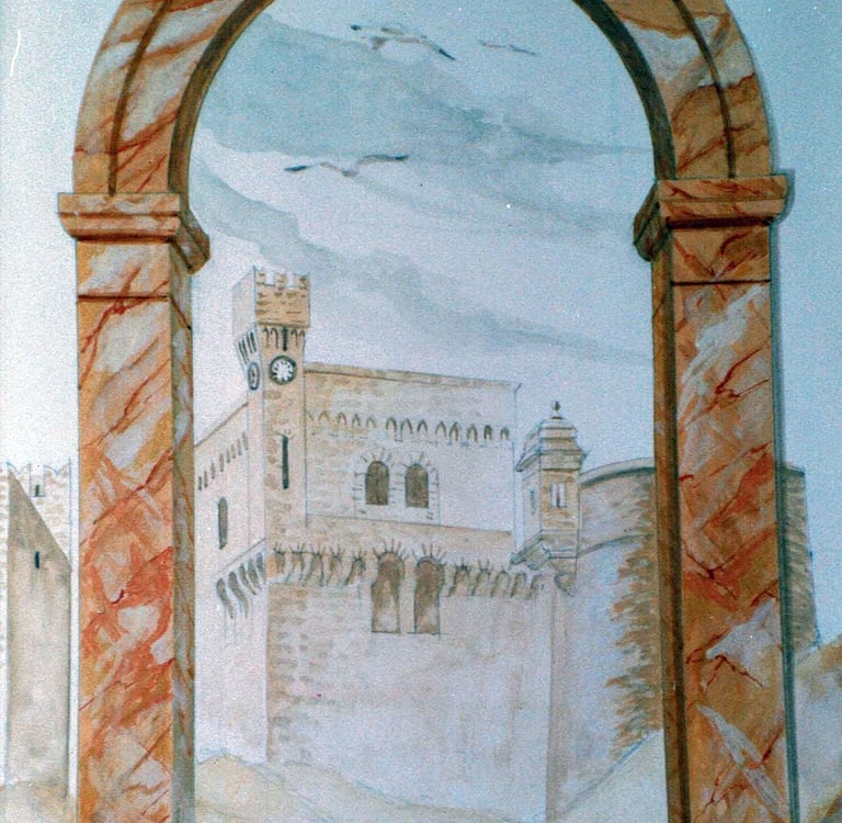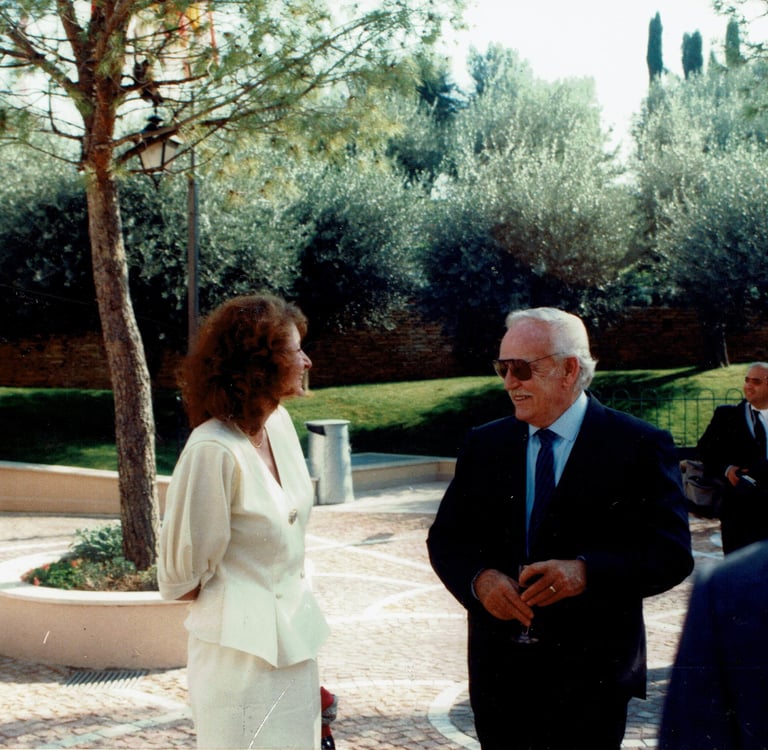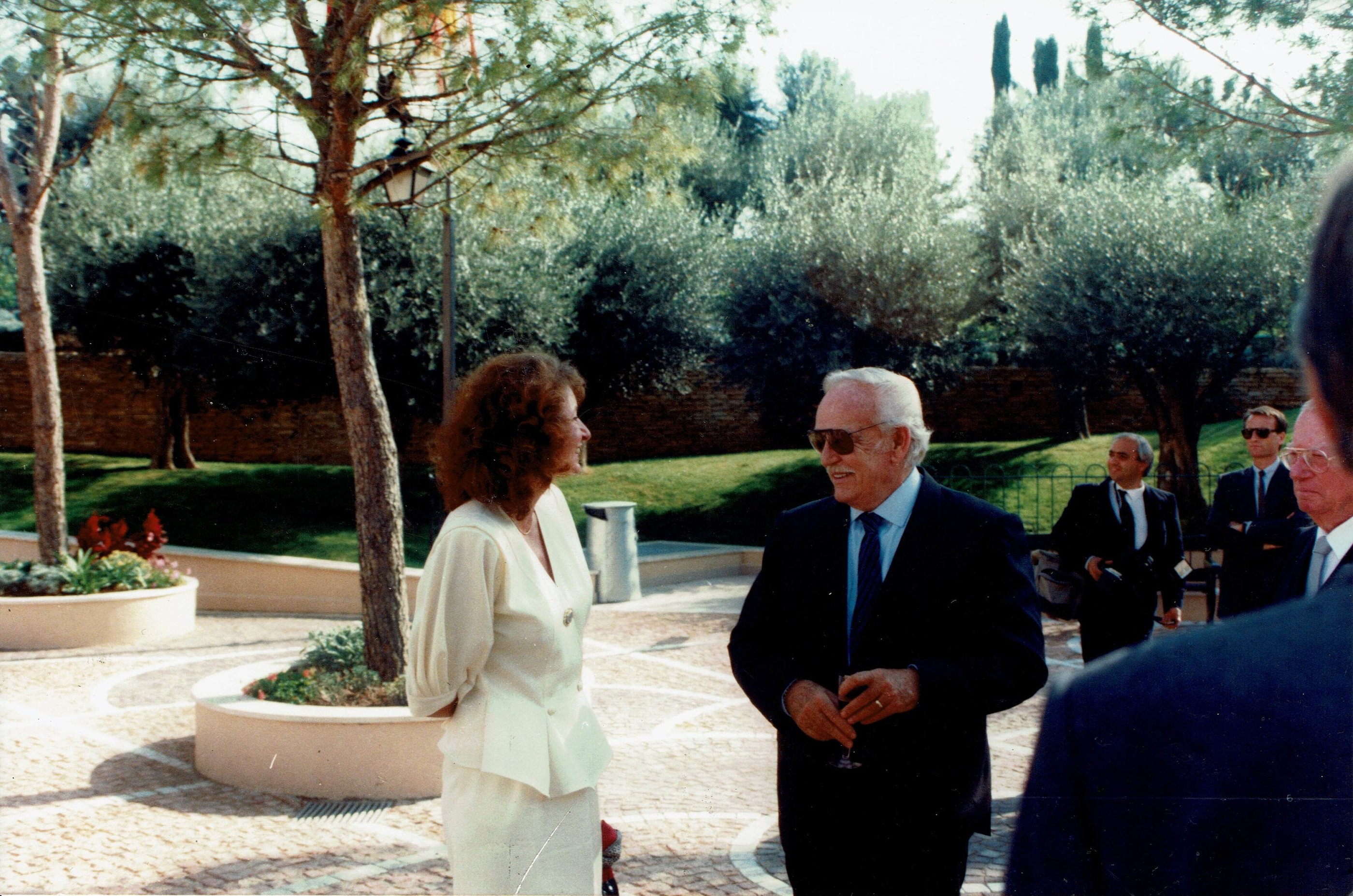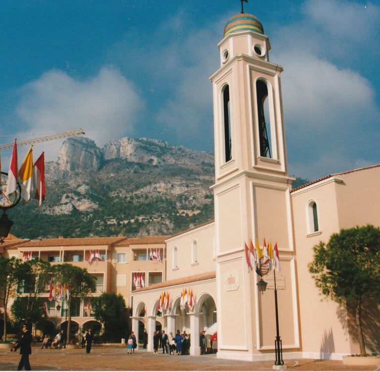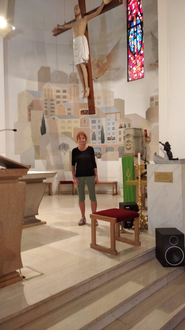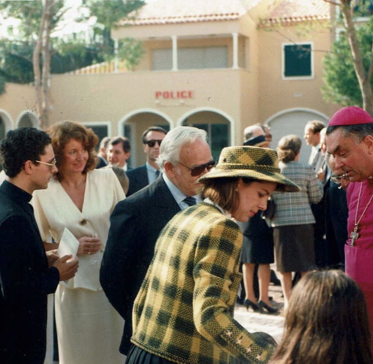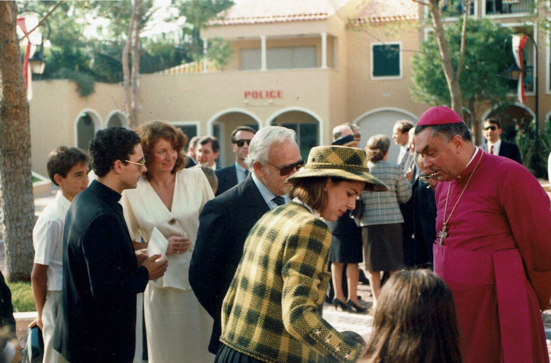 La famille princière de Monaco était présente à la consécration de la chapelle Saint Nicolas de Fontvieille, comme en témoigne la photo où l’artiste est présente à gauche derrière SAS Le Prince Rainier et Caroline de Monaco.