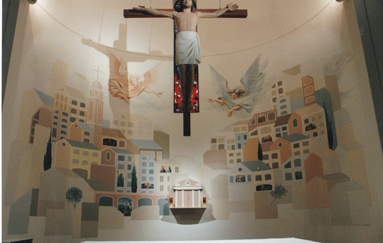 Fresque du chœur sur le thème de la Jérusalem céleste.