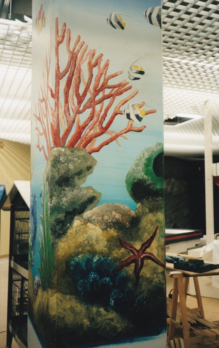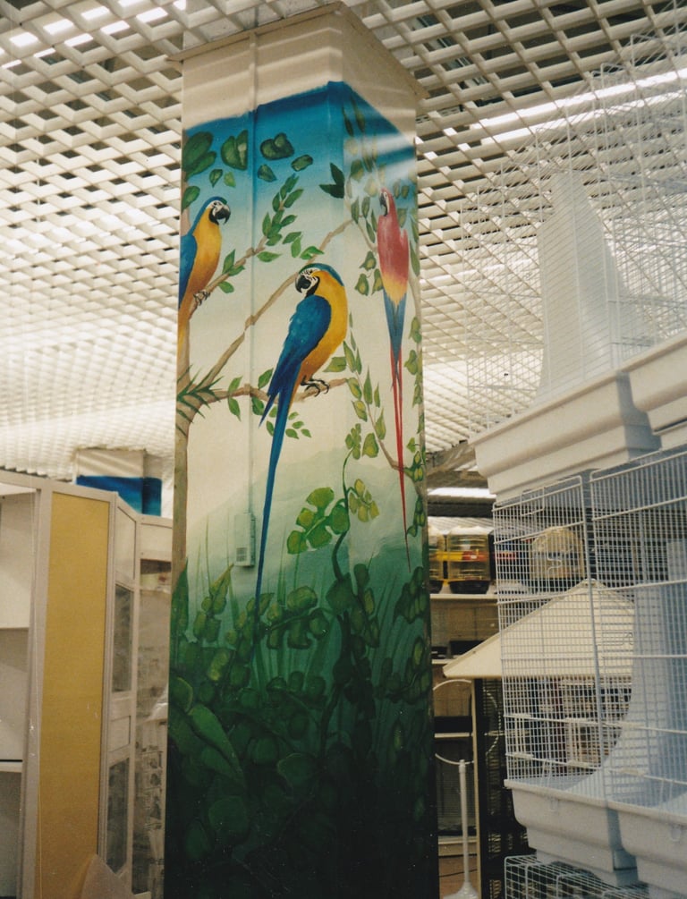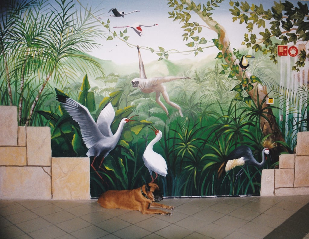 Fresque réalisée dans le hall d'entrée d'une grande animalerie.