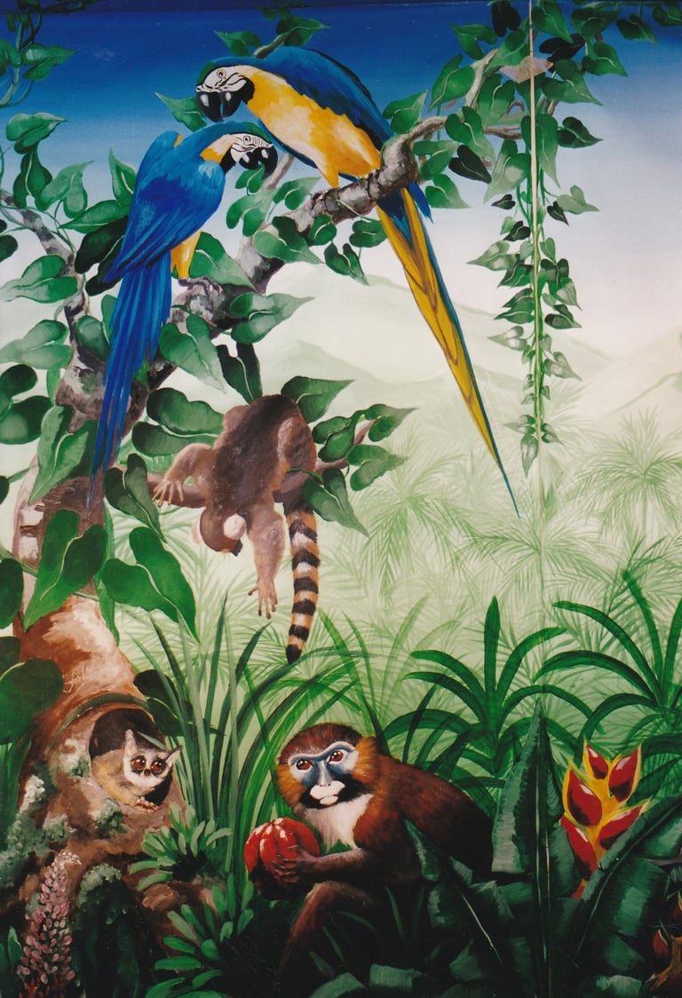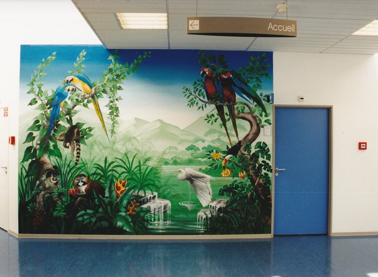 Jungle. Fresque réalisée dans un centre commercial.
