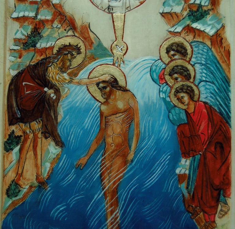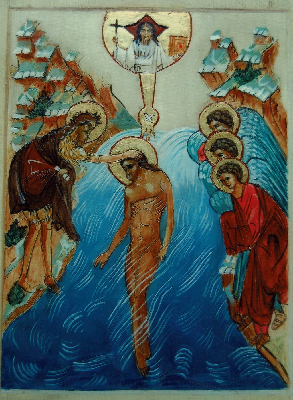 « Jésus vint de Nazareth en Galilée, et il fut baptisé par Jean dans le Jourdain, au moment ou il sortait de l’eau. Il vit les cieux s’ouvrir et l’Esprit descendre sur lui comme une colombe, et une voix fit entendre des Cieux ces paroles : »