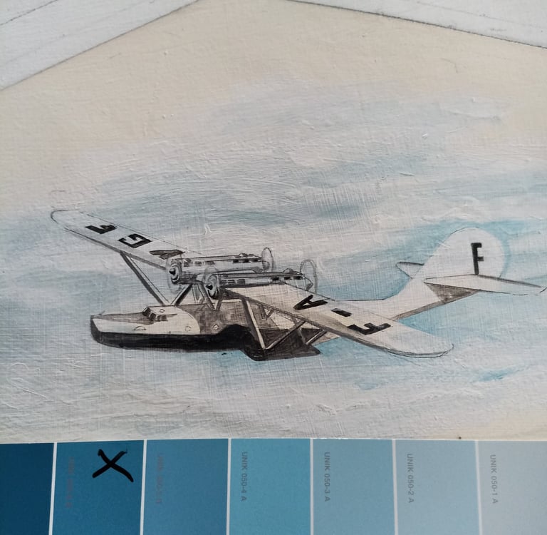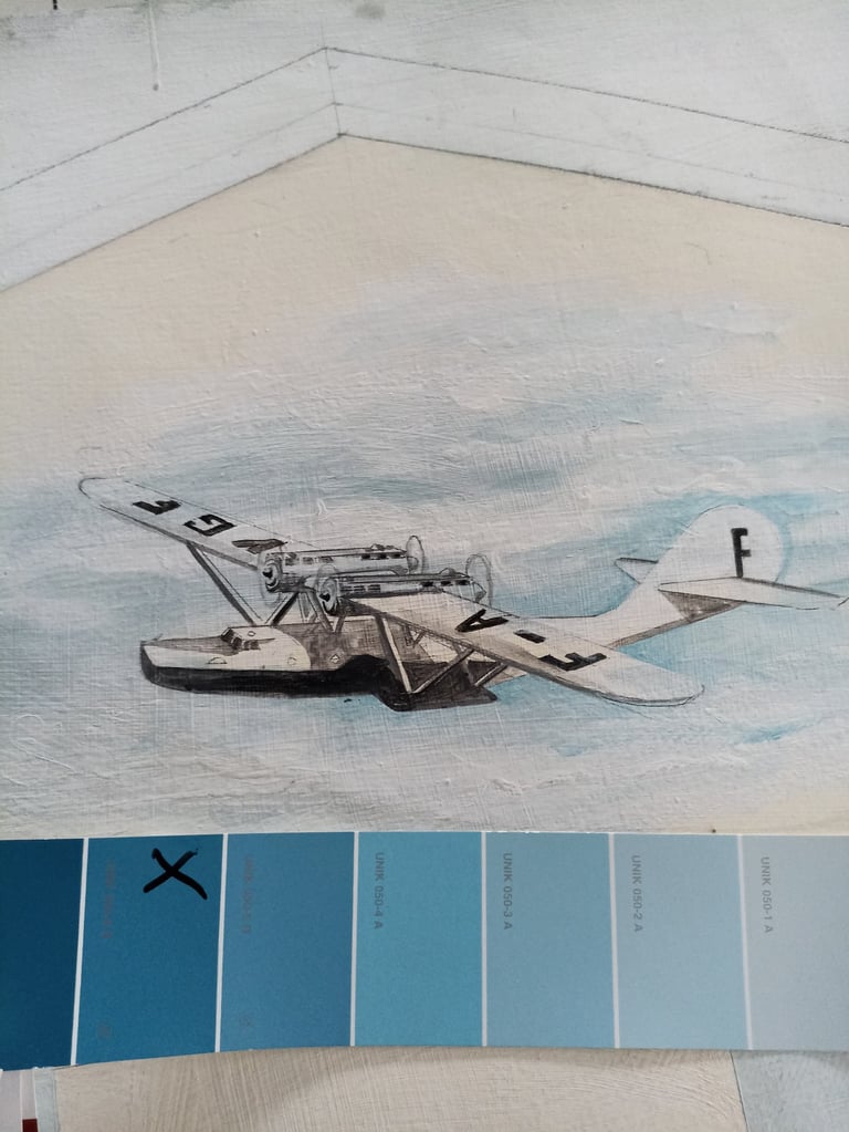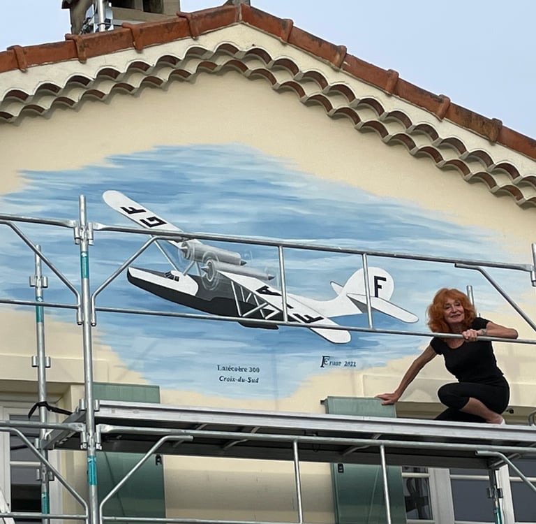La seconde fresque représente la croix du sud, avion de l’aéropostale piloté par Mermoz.